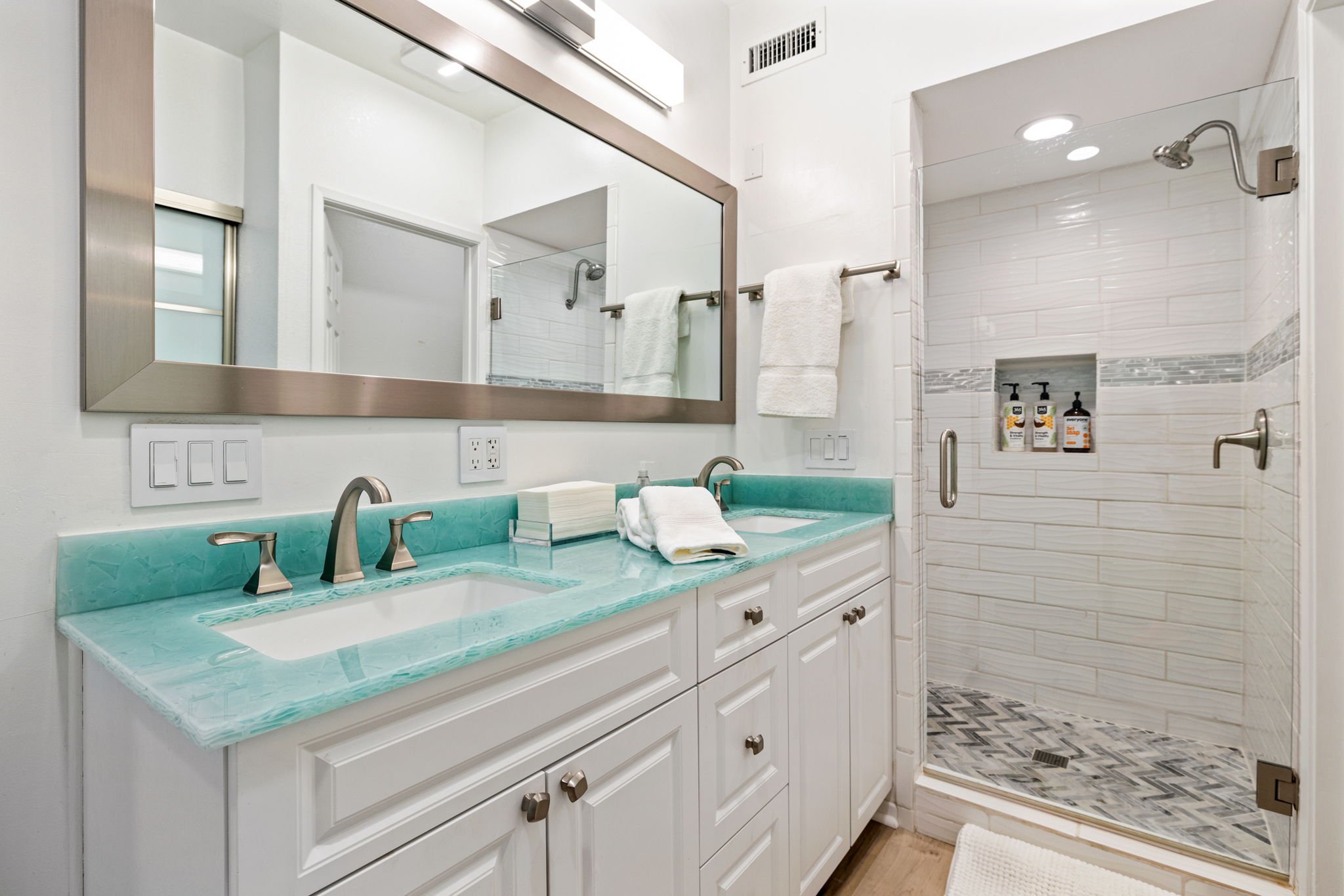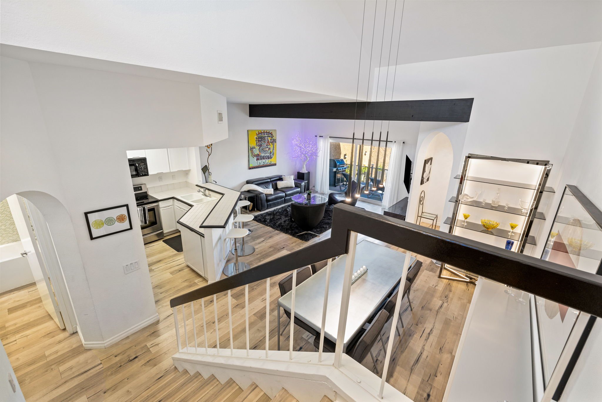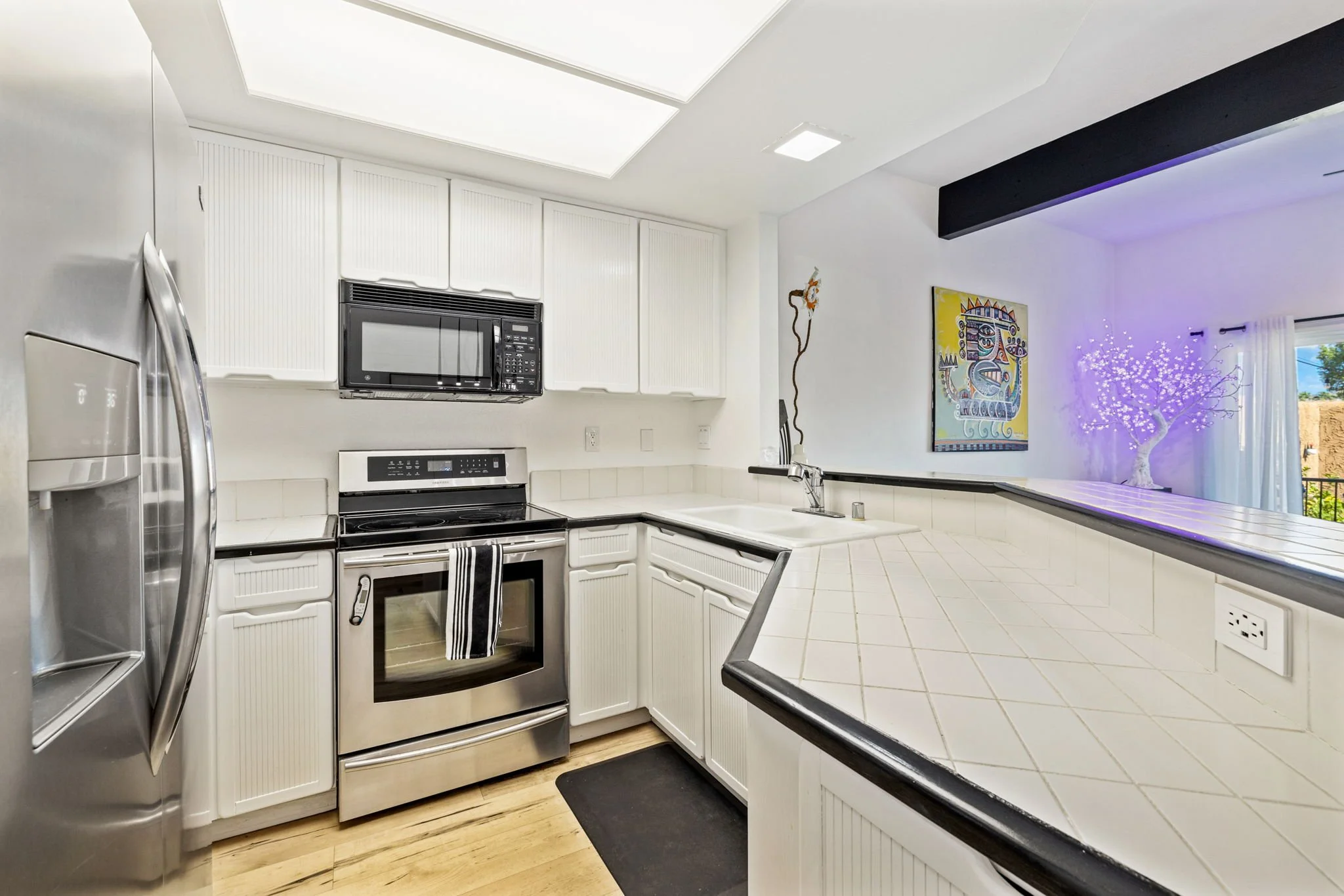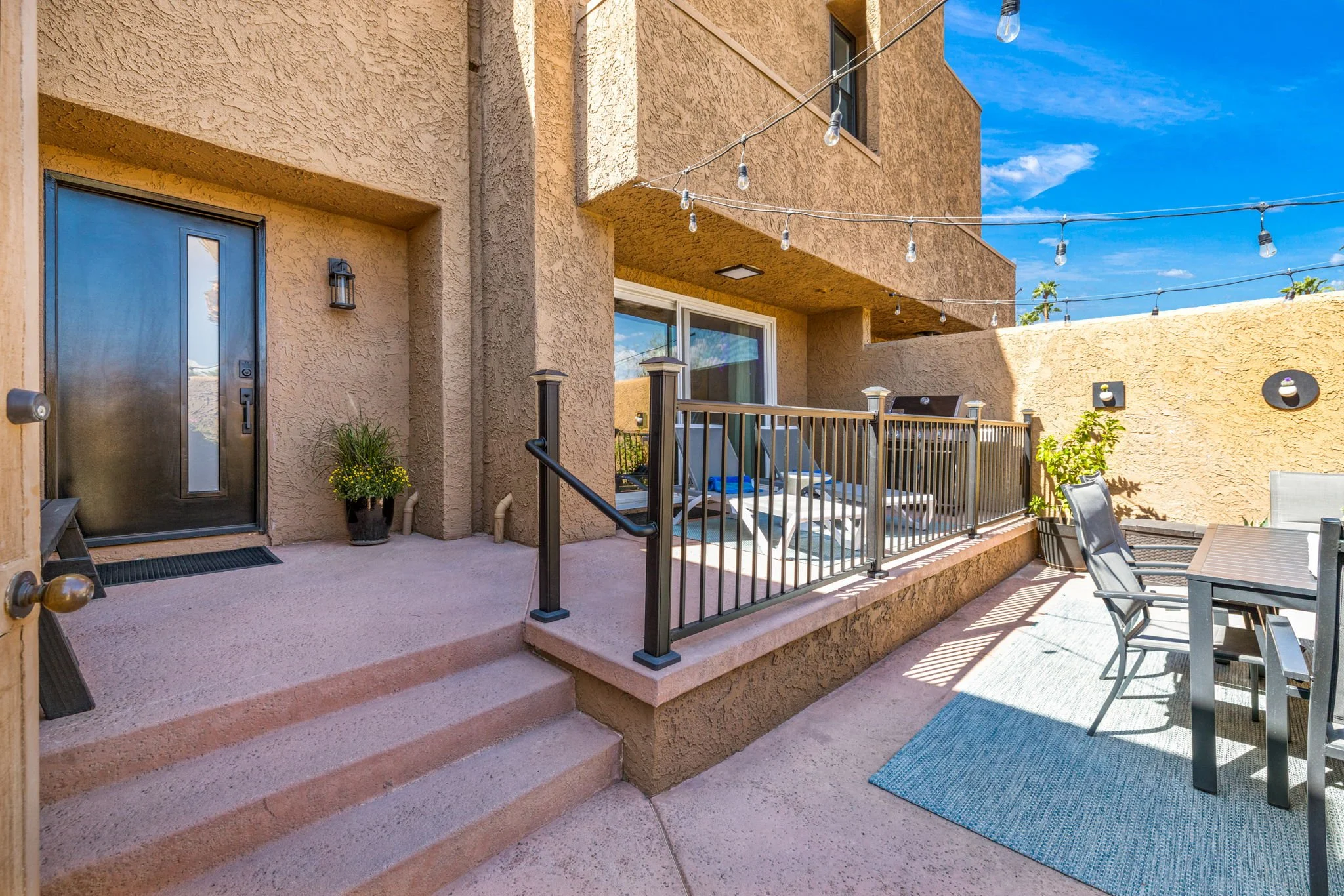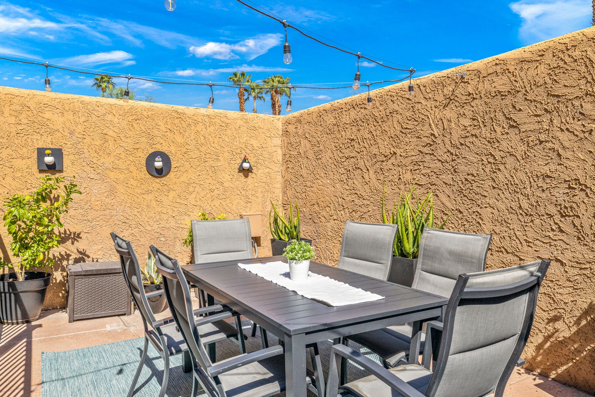 Two story, 2 bedroom, 3 bathroom unit with a private patio & two car garage.