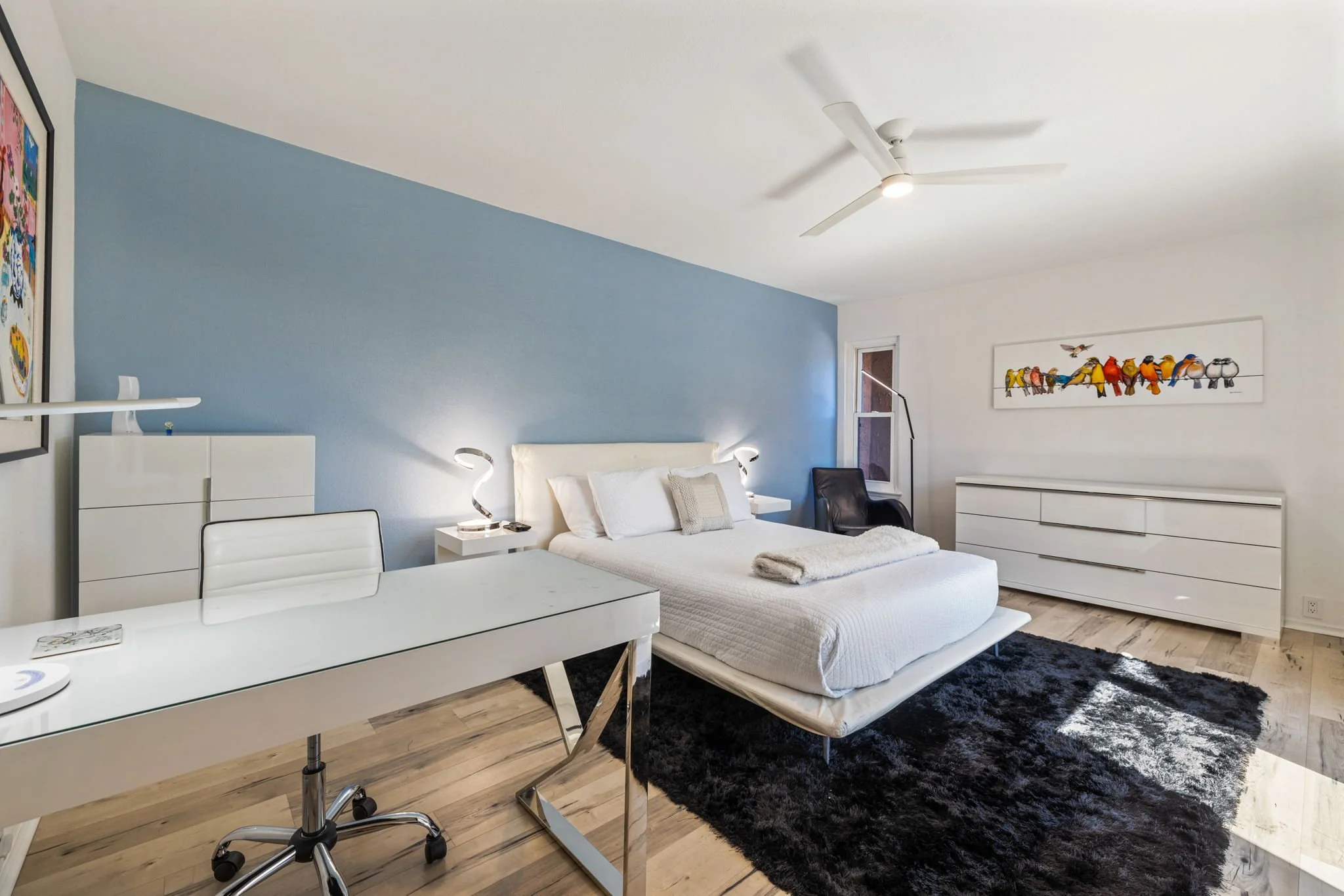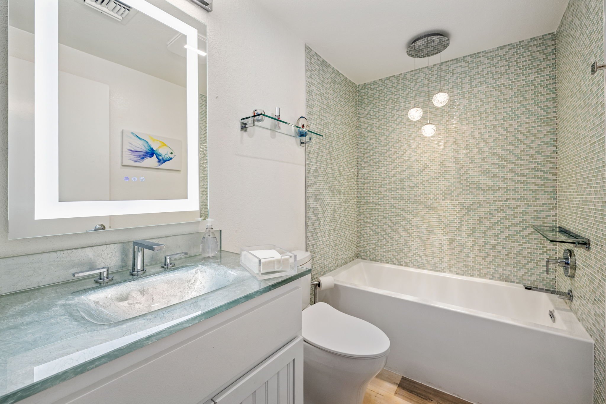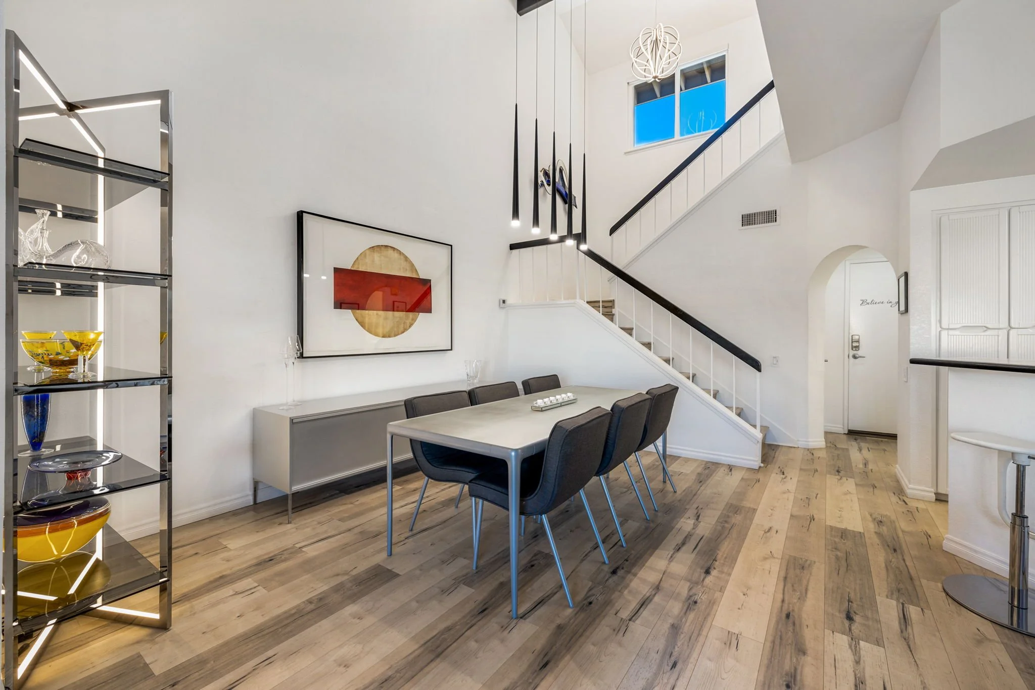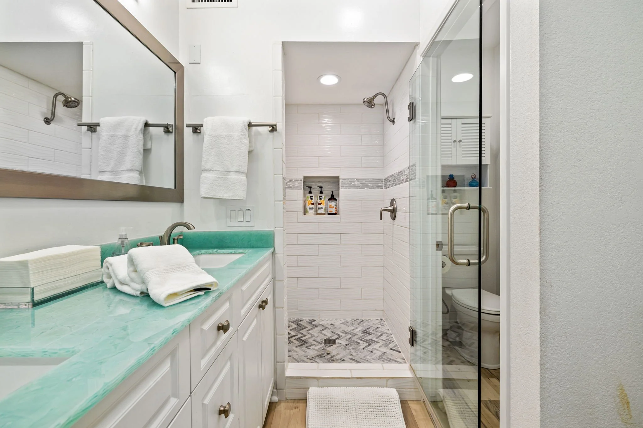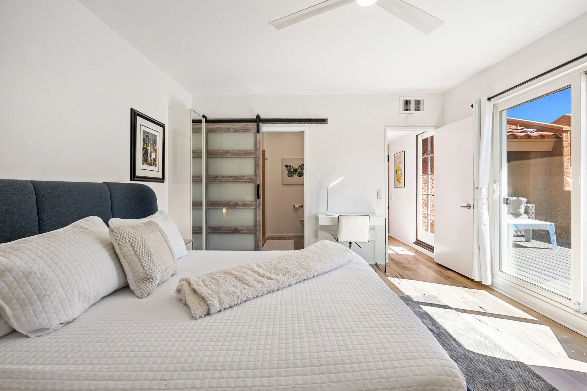 Two story, 2 bedroom, 3 bathroom unit with a private patio & two car garage.